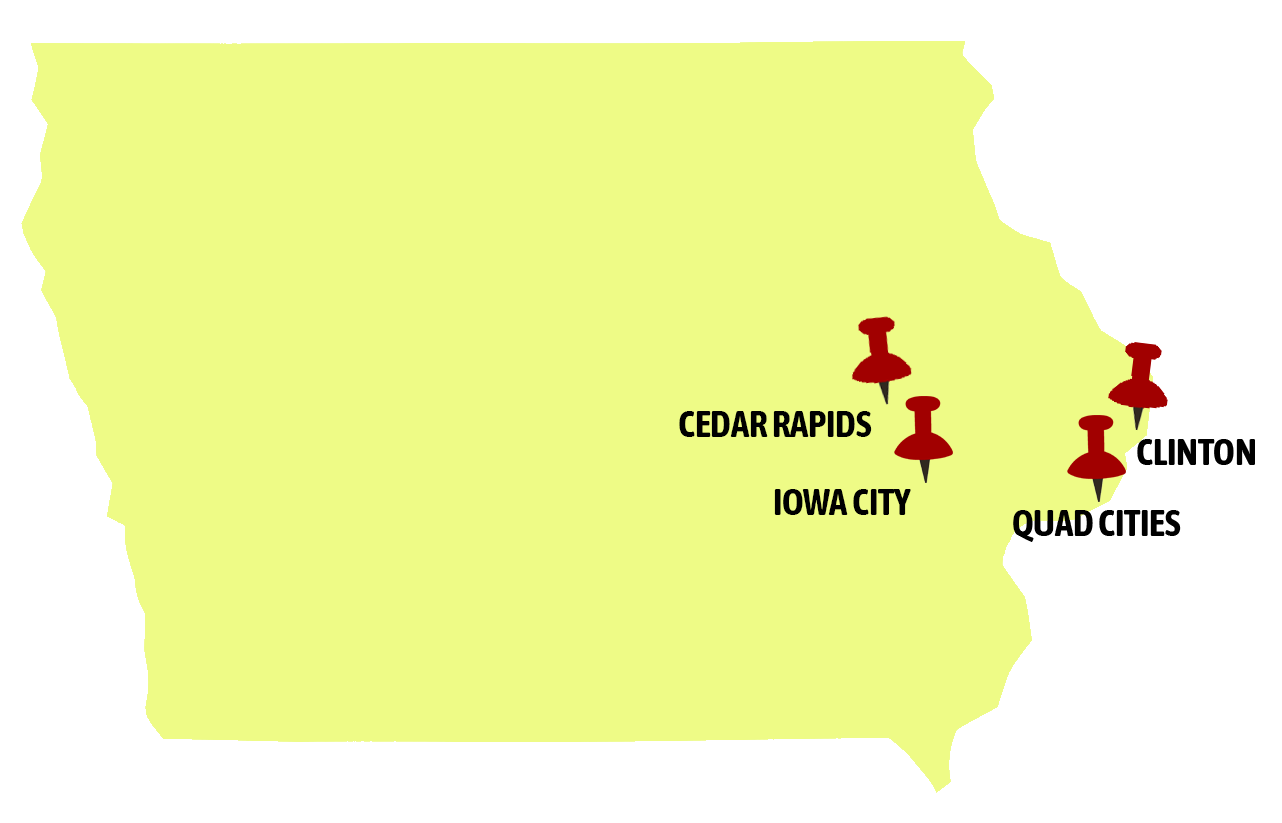 Cedar Rapids, IA • Ely, IA • Hiawatha, IA • Marion, IA • Palo, IA • Robins, IA • Toddville, IA